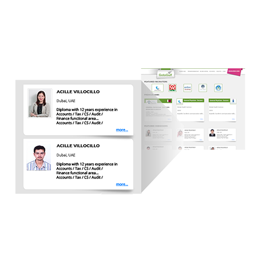 While visiting GotoGulf, almost all recruiters visit the home page first before posting jobs or logging into their account. As a premium member, your profile is displayed in the home page for 30 days offering maximum exposure. After 30 days, your profile is still accessible to Recruiters which is displayed in Featured Jobseekers page.