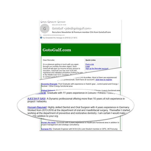 GotoGulf sends periodic newsletter to Recruiters. Your profile will be included in this Newsletter that reaches over a 1000 recruiters.